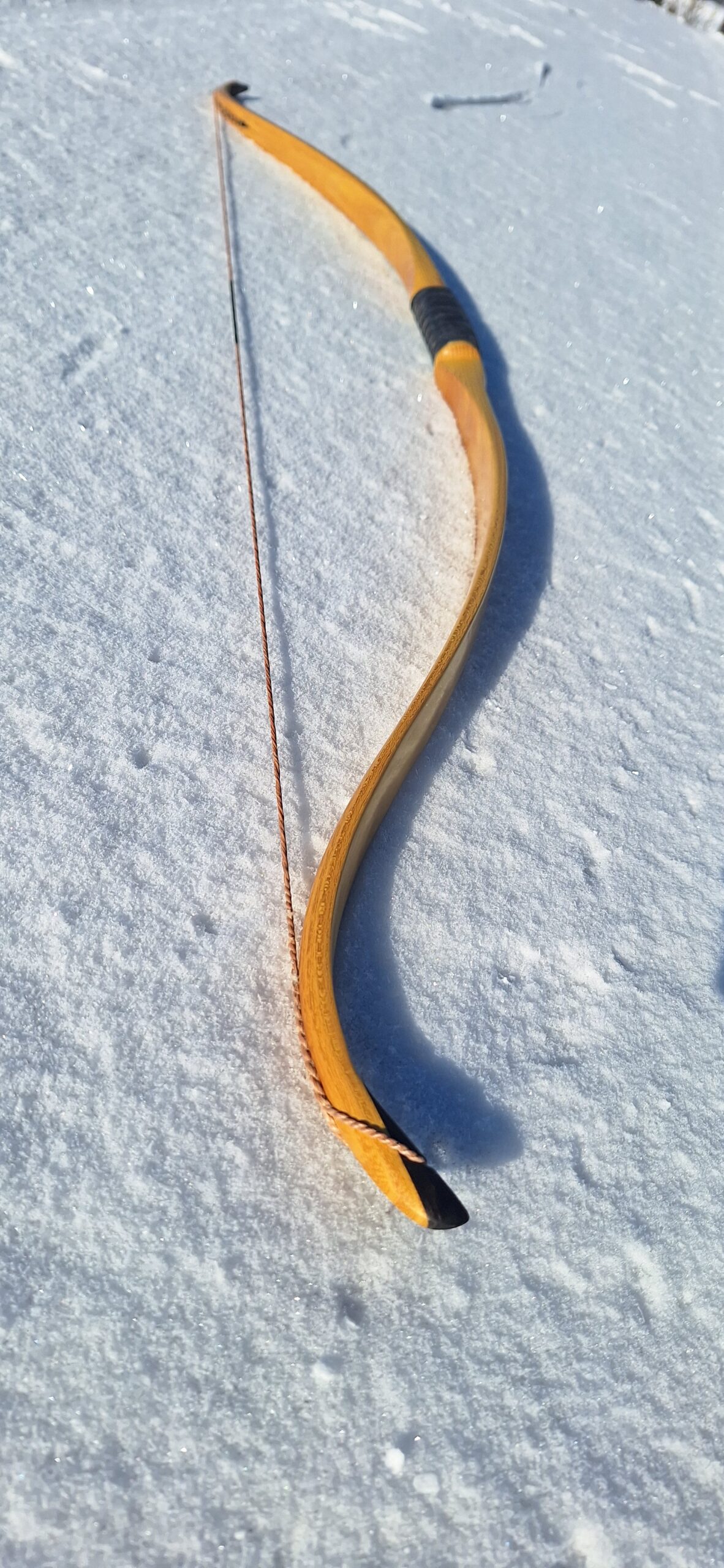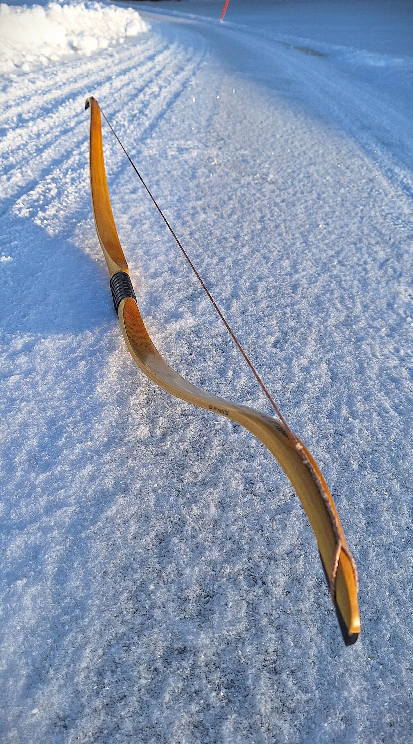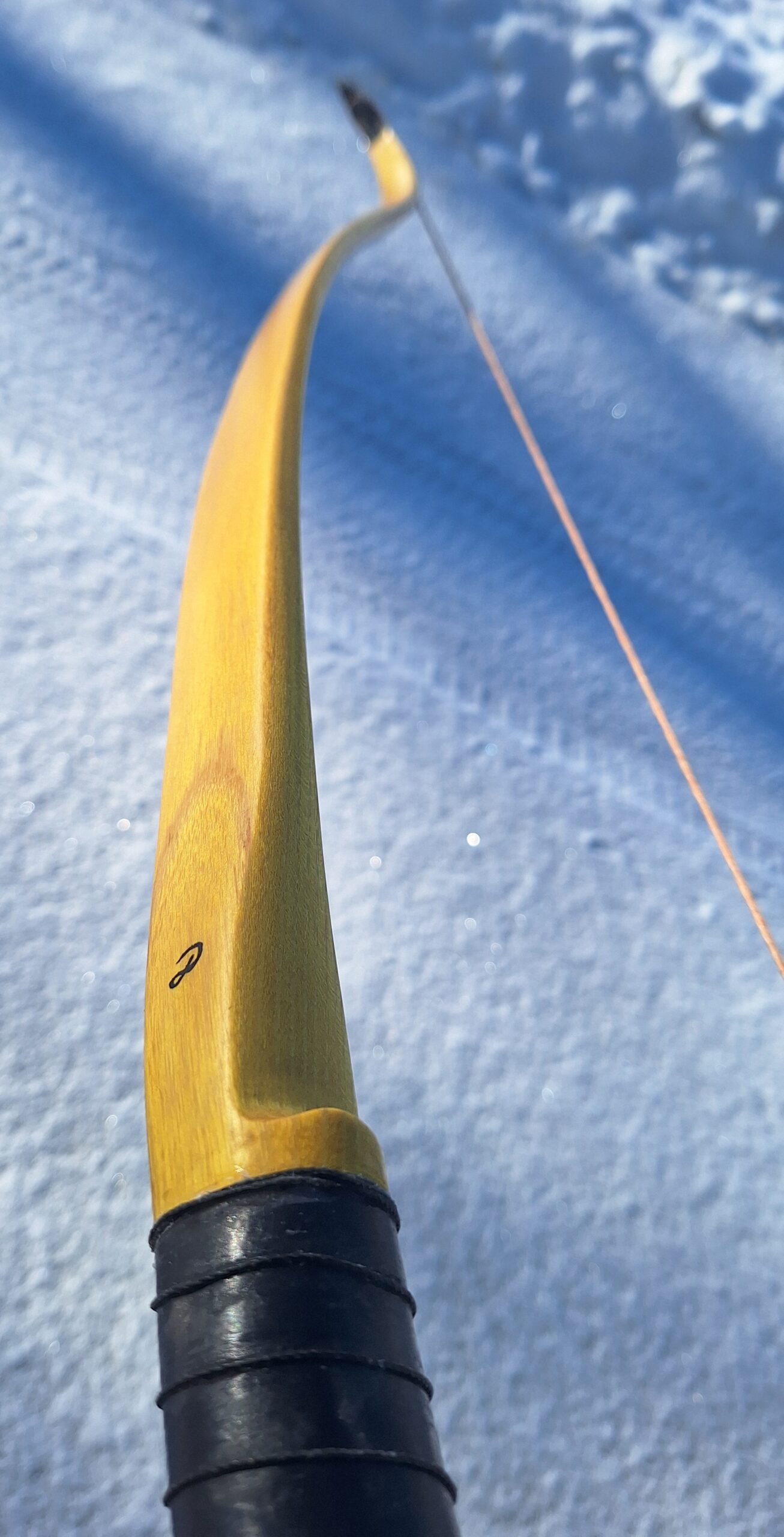 Making a hunting bow always feels a little more serious than making just a target bow. Hunting animals was the original purpose of the bow. This one is even more special – after passing all the necessary tests – it may will be taken to Alaska to hunt bear. During construction, I imagined more than once the moment when this bear stands in front of you…and yes, I prefer to just make the bow.