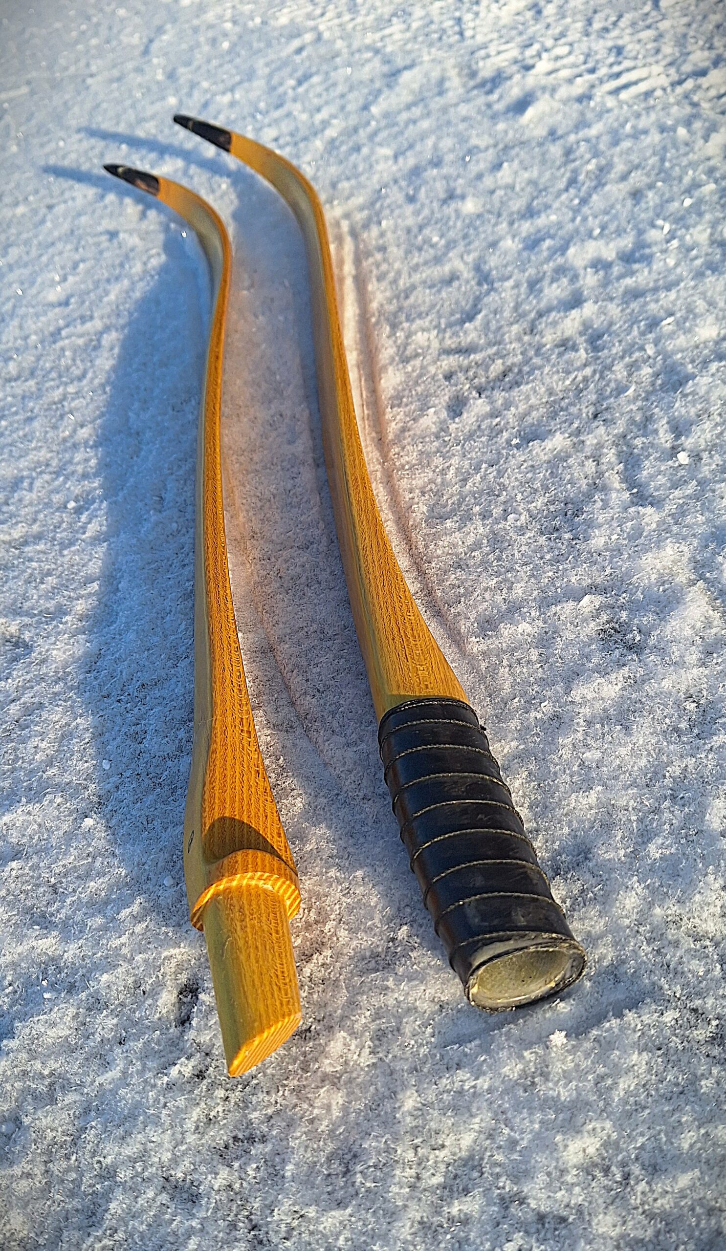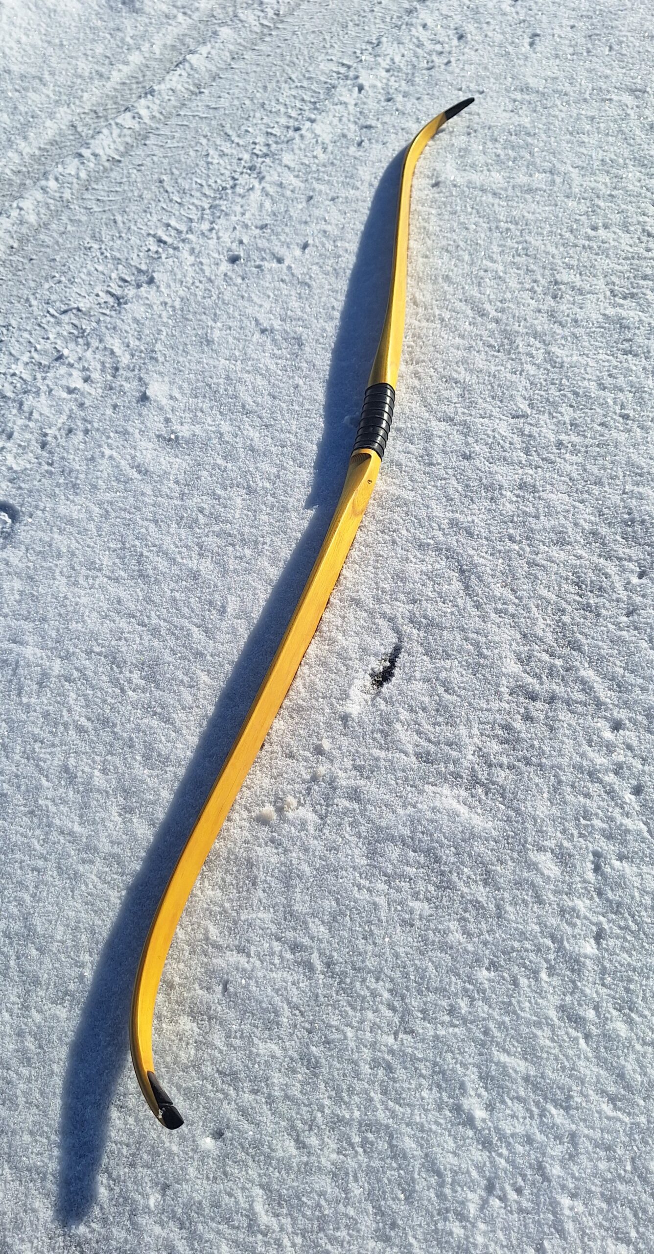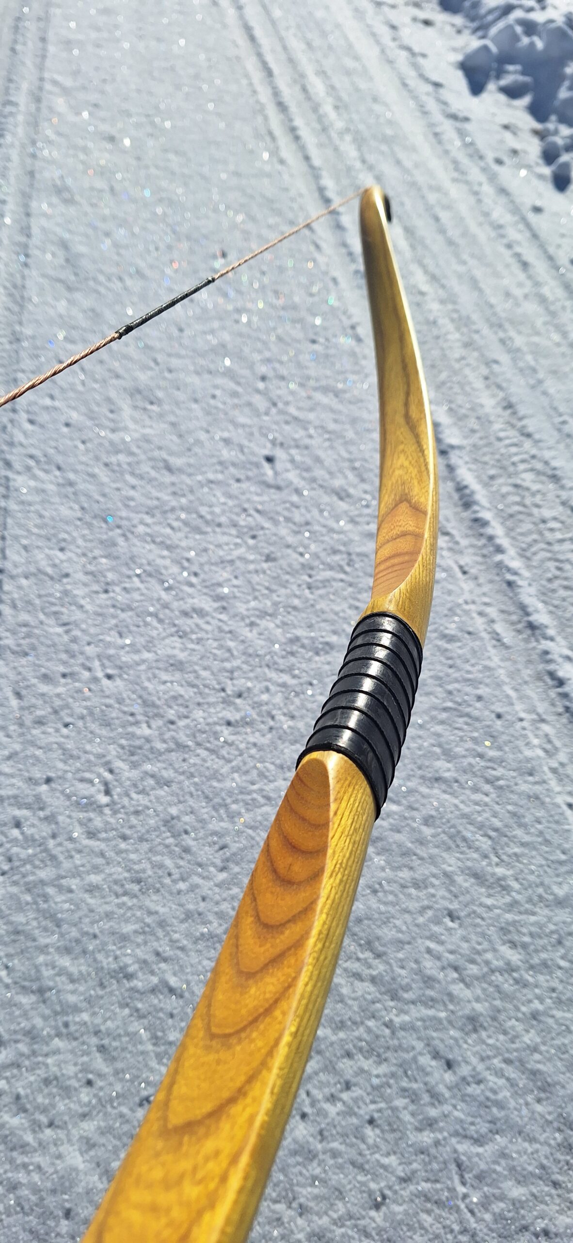 Making a hunting bow always feels a little more serious than making just a target bow. Hunting animals was the original purpose of the bow. This one is even more special – after passing all the necessary tests – it may will be taken to Alaska to hunt bear. During construction, I imagined more than once the moment when this bear stands in front of you…and yes, I prefer to just make the bow.